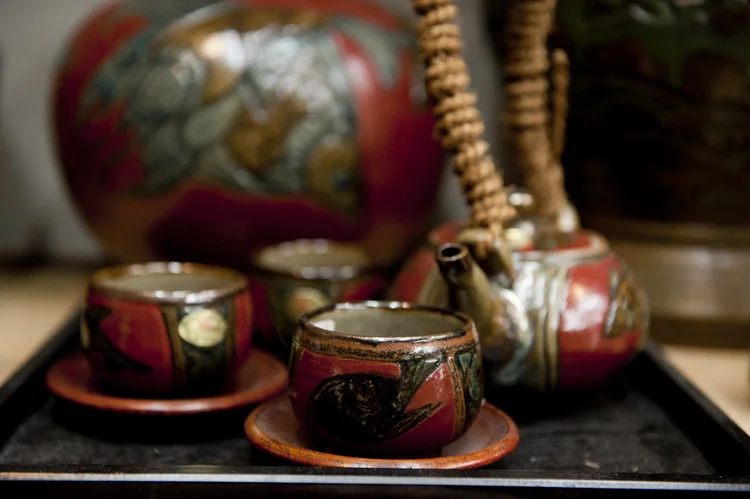 小橋川清正陶器店雨上がりの赤瓦の色に魅せられ、赤色を研究。2000年のG8沖縄サミット「首里城首脳晩餐会」にて窯主:小橋川清正作、練込み皿が使用され、記念の品として各国首脳に贈られました。息子二人「卓史・明史」ともに壺屋焼の陶工として頑張っています。どうぞお越し下さい。電話098-863-4771営業時間09:00 ~ 18:00休業日不定休駐車場あり住所壷屋1-22-29 GoogleMap お店紹介へ戻る